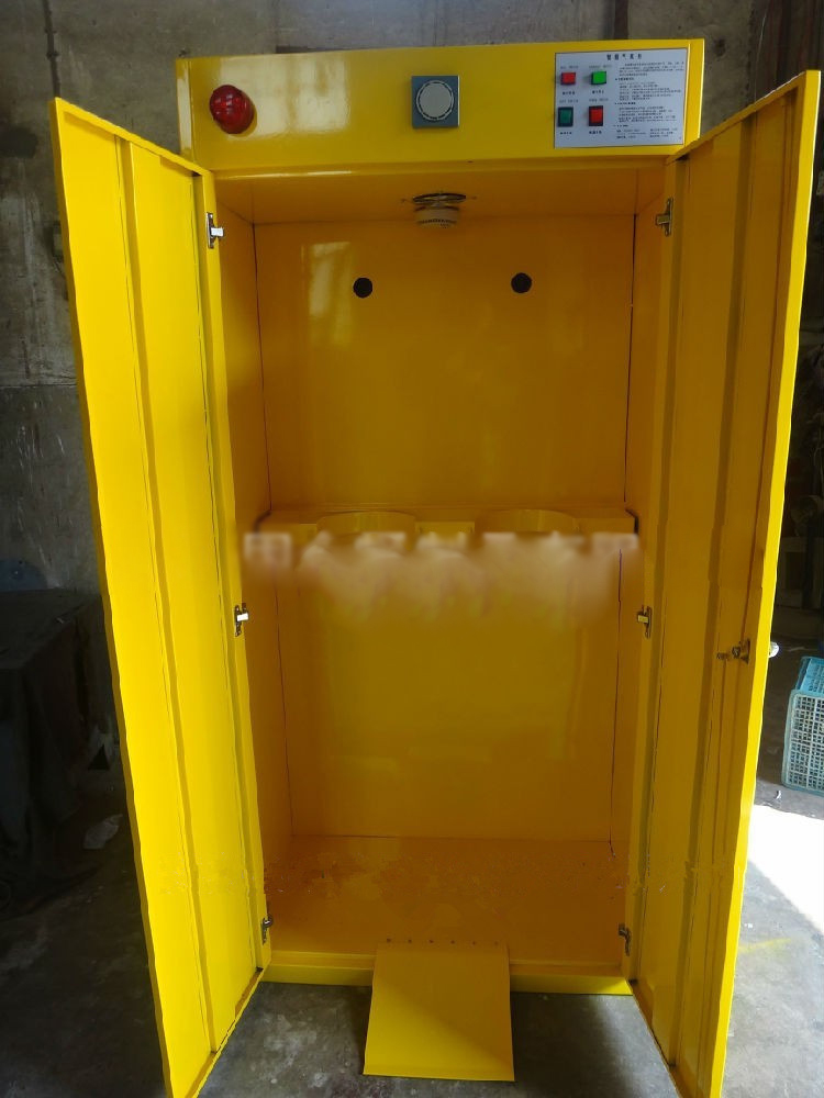 u 全自動(dòng)報(bào)警氣瓶柜:該報(bào)警系統(tǒng)技術(shù)性強(qiáng),靈敏度高,一旦有氣體泄露,該報(bào)警系統(tǒng)自動(dòng)報(bào)警并自動(dòng)排風(fēng),把危險(xiǎn)氣體排出室外。柜體內(nèi)部結(jié)構(gòu)可保證氣瓶的安置和擺放。適合各種氣體氣瓶的存放。牢固可靠,防腐阻燃。